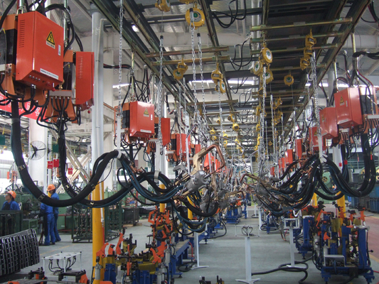 1- Ευέλικτο και αποδοτικό σύστημα συγκόλλησης: Ο εξοπλισμός υιοθετεί ευέλικτο σχεδιασμό ανάρτησης, το οποίο συνδυάζεται με κύρια και βοηθητικά καλώδια ψύξης με νερό, με ευρύ φάσμα κάλυψης,που μπορούν εύκολα να προσαρμοστούν στις ανάγκες συγκόλλησης διαφόρων σταθμών εργασίαςΙδιαίτερα κατάλληλο για ζύγιση σε πολλά σημεία μεγάλων εργαστηρίων όπως τα αμάξια αυτοκινήτων.